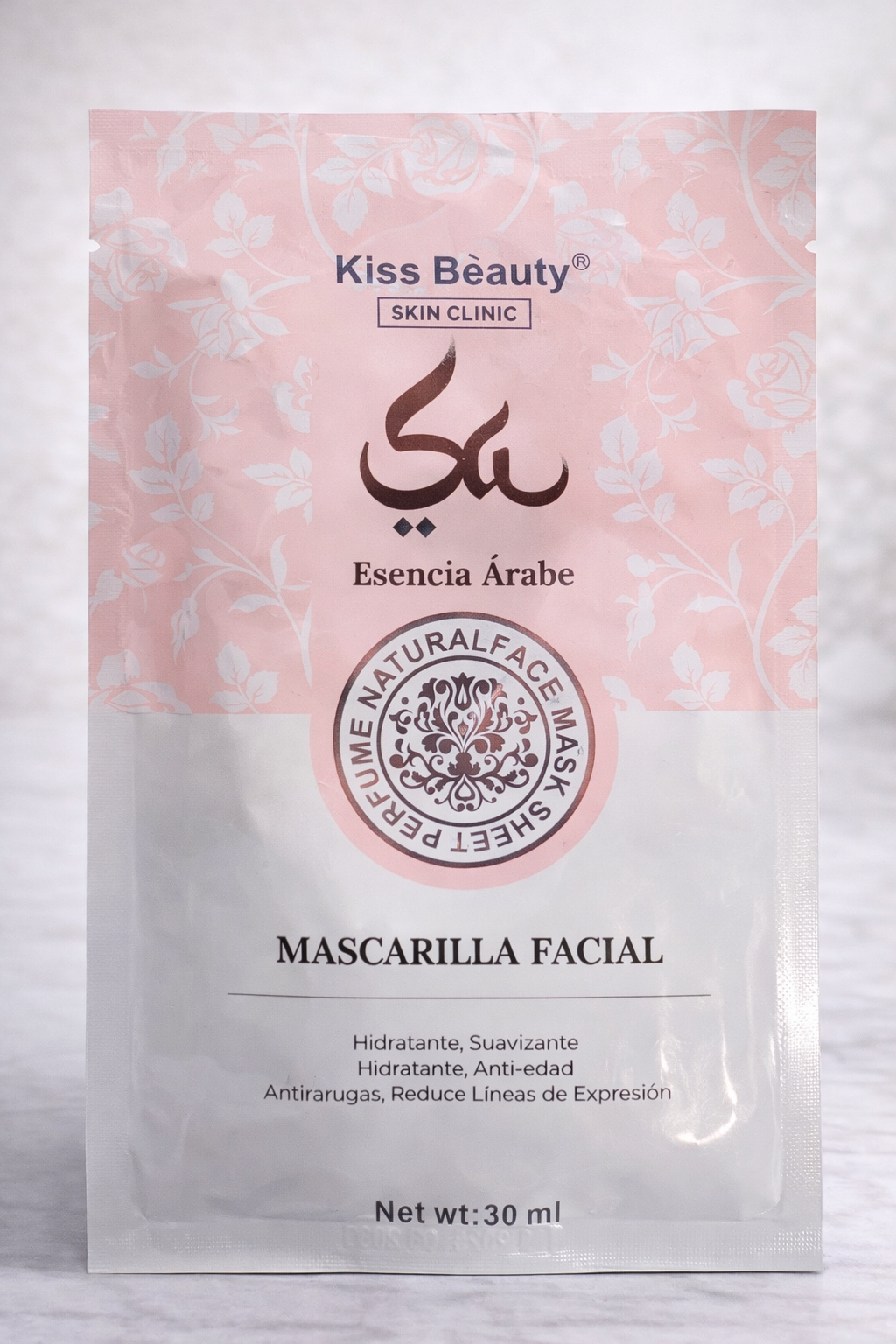 Mascarilla facial de uso único con esencia Yara Rosa, formulada para hidratar, suavizar y ayudar a combatir los signos de la edad.