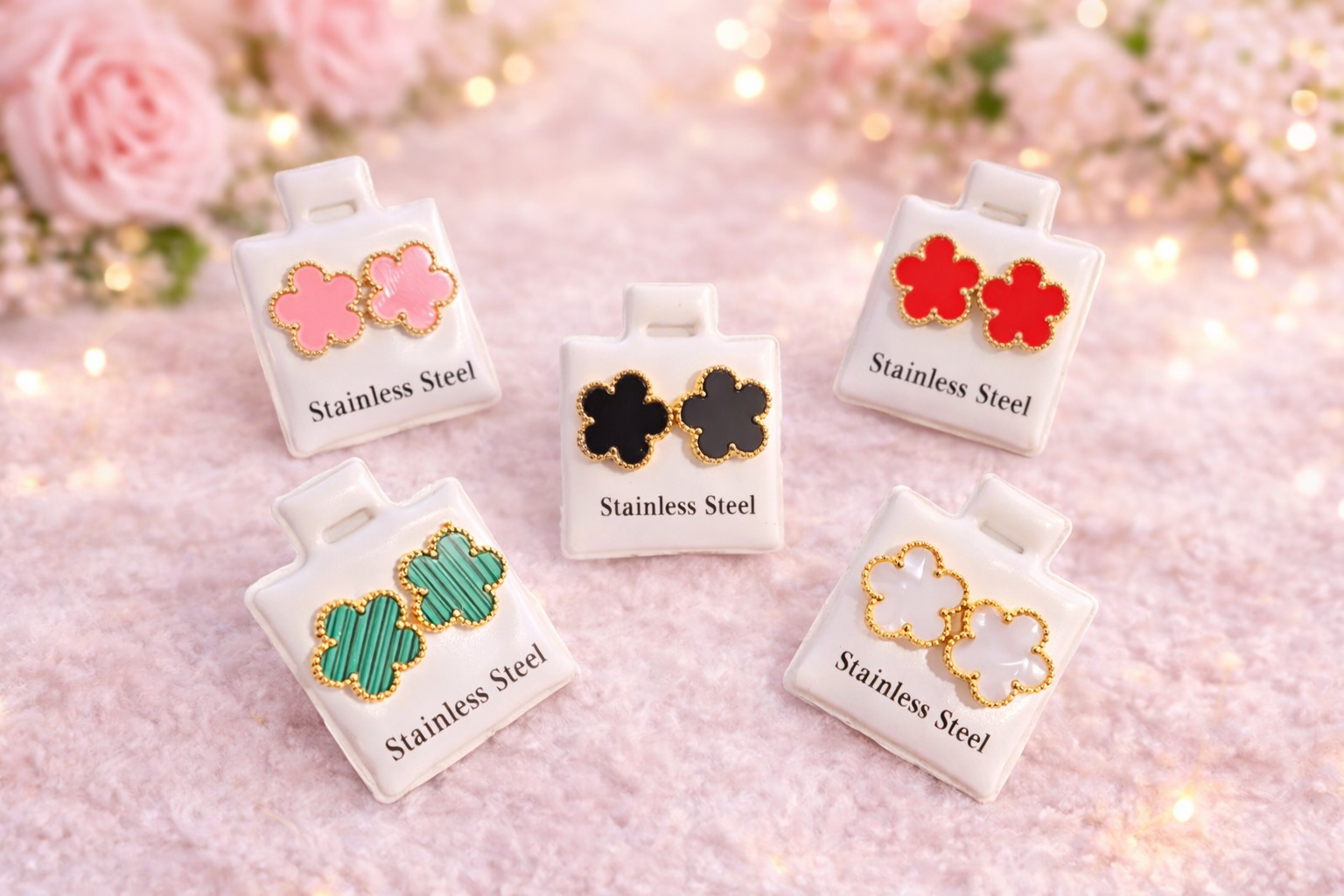 Descubre estos pendientes de trébol en acero inoxidable, un accesorio elegante y moderno perfecto para cualquier ocasión.