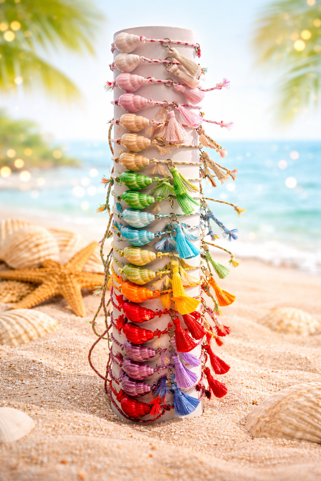 Pack de 4 pulseras ajustable con concha decorativa disponible en varios colores inspirados en el verano.