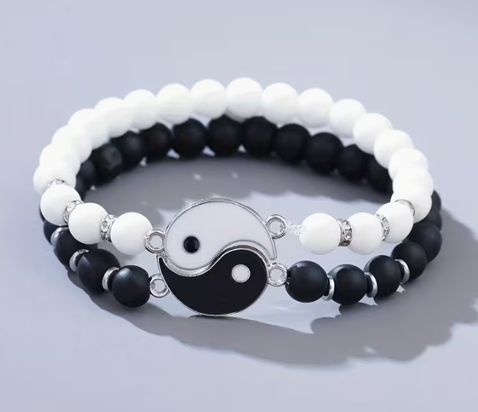 Pulsera elegante con diseño Yin Yang, símbolo de equilibrio y armonía.
