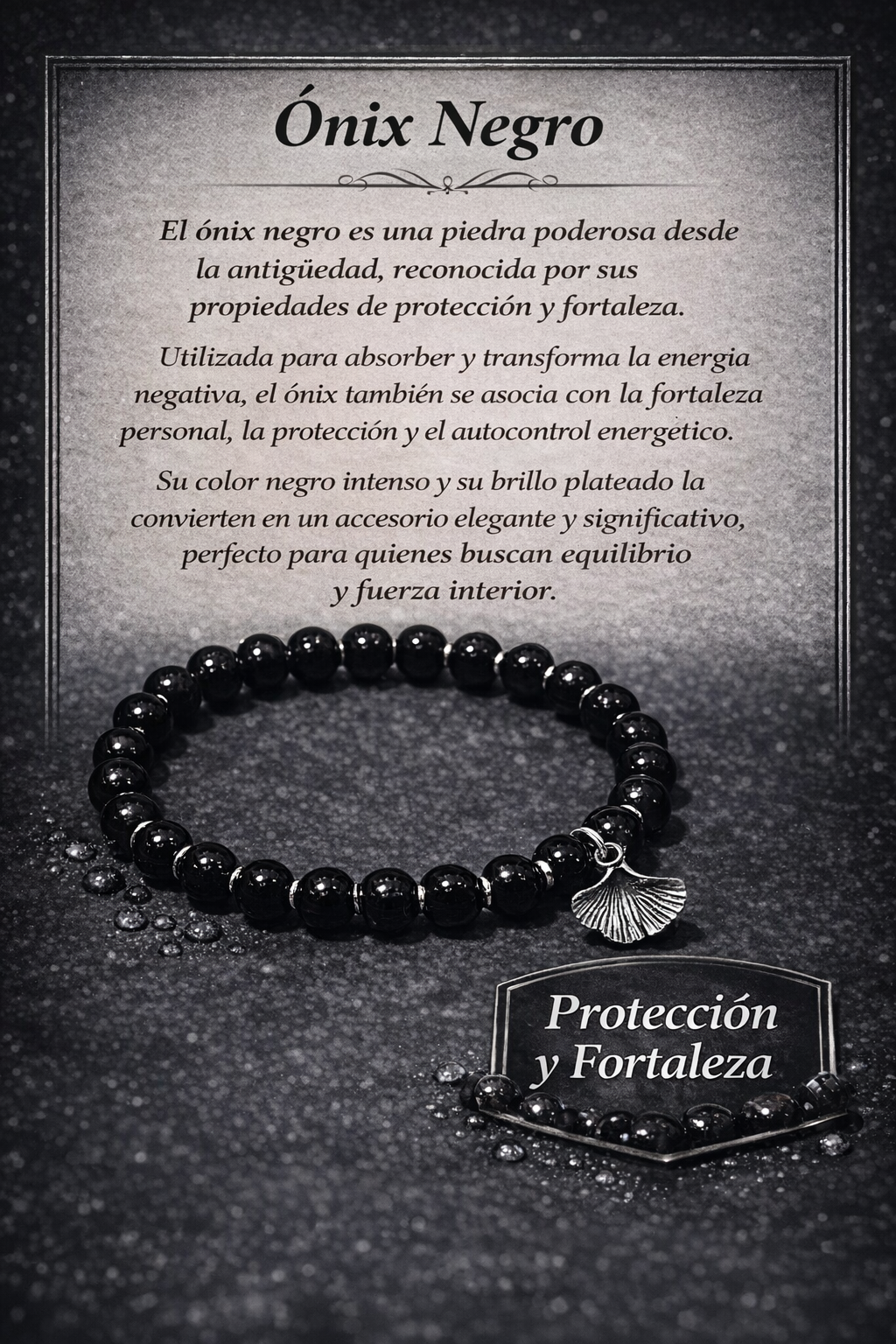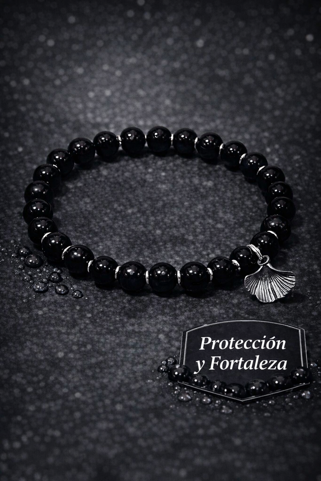 Su color negro profundo simboliza la fuerza, la protección y la confianza. Esta pulsera es un accesorio elegante y significativo, ideal para llevar cada día o regalar a alguien especial.