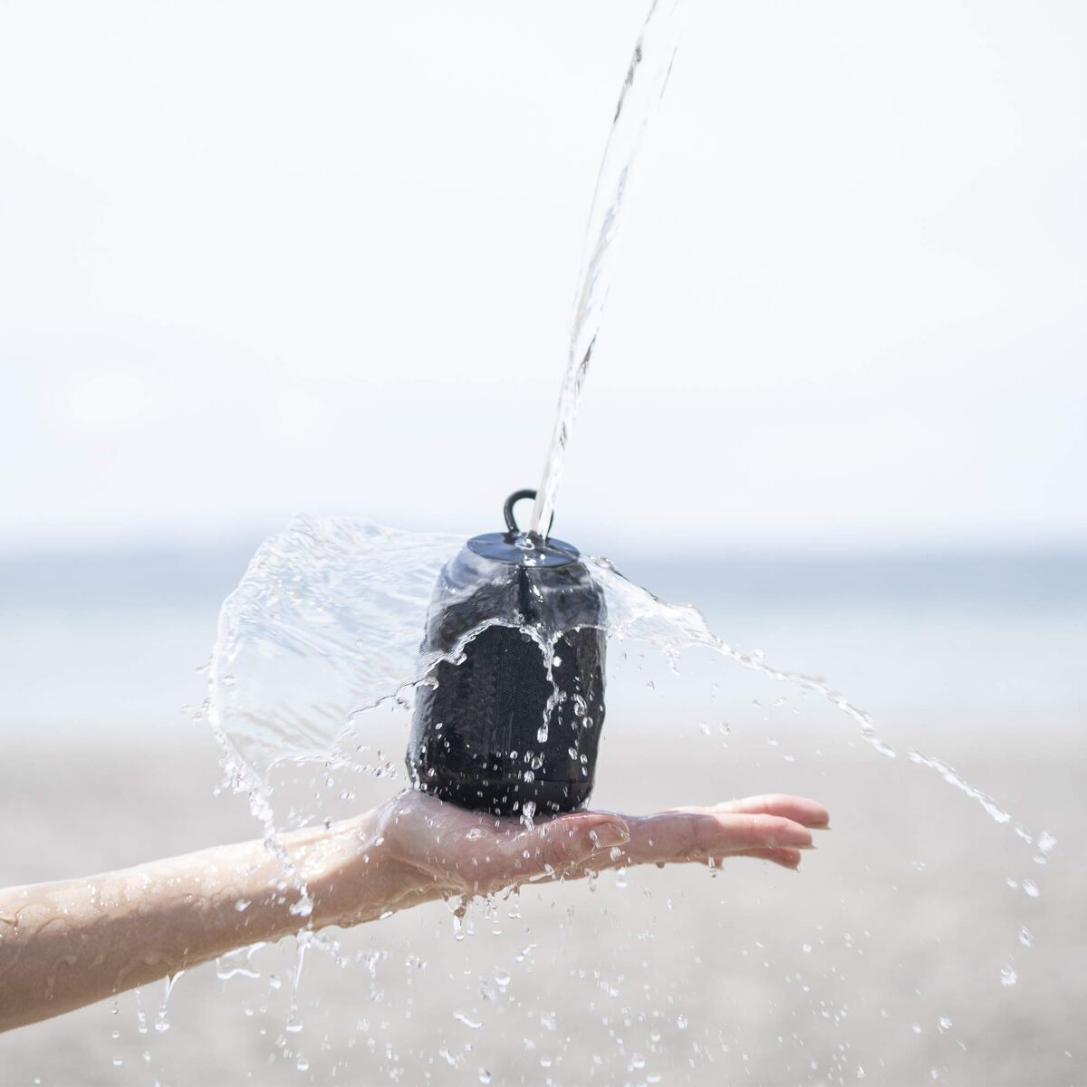 El diseño hermético y portable del altavoz Urban Rok M resistirá además del polvo y arena a cualquier líquido que caiga por encima de él, porque cuenta con certificado IPX7.