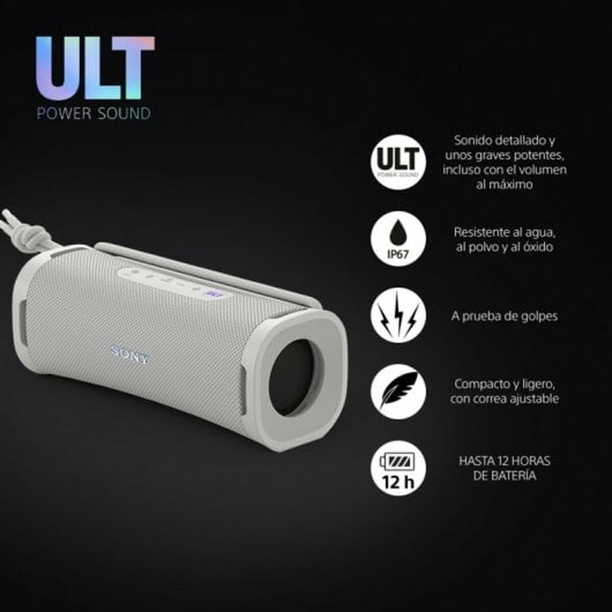 El altavoz Bluetooth portátil Sony ULT FIELD 1/ 2.0 en color blanco es un dispositivo compacto diseñado para ofrecer una experiencia de audio práctica y versátil en cualquier entorno. Este modelo destaca por su conectividad Bluetooth 5.3, que garantiza una transmisión inalámbrica estable y eficiente, con menor consumo energético y mayor alcance respecto a versiones anteriores, facilitando la conexión rápida y sin interrupciones con smartphones, tablets u otros dispositivos compatibles. Su diseño mini y universal lo hace ideal para llevarlo cómodamente a cualquier parte, combinando portabilidad con funcionalidad sin sacrificar calidad. Entre sus atributos técnicos, integra un micrófono incorporado que permite atender llamadas con manos libres, aportando un plus de utilidad para uso cotidiano, mientras que la función de apagado automático contribuye a optimizar la duración de la batería, evitando consumos innecesarios cuando no está en uso. Su construcción en color blanco le confiere un acabado moderno y limpio, apto para diversos estilos y espacios. En conjunto, este altavoz ofrece una solución sencilla y eficiente para quienes buscan un equipo compacto y fiable que proporcione un sonido adecuado para ambientes pequeños o medianos, siendo compatible con una amplia gama de dispositivos gracias a su naturaleza universal. El Sony ULT FIELD 1/ 2.0 representa una opción equilibrada que combina tecnología actual y portabilidad para uso diario.