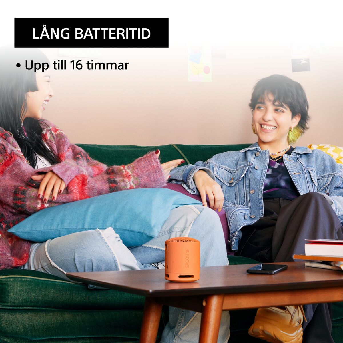 El XB100 cuenta con una duración de batería de hasta 16 horas, para que tus amigos y tú escuchéis música todo el día y parte de la noche. El porcentaje de batería restante se muestra con claridad en tu smartphone cuando conectas el XB100, lo que te permite saber cuándo es hora de cargarlo.