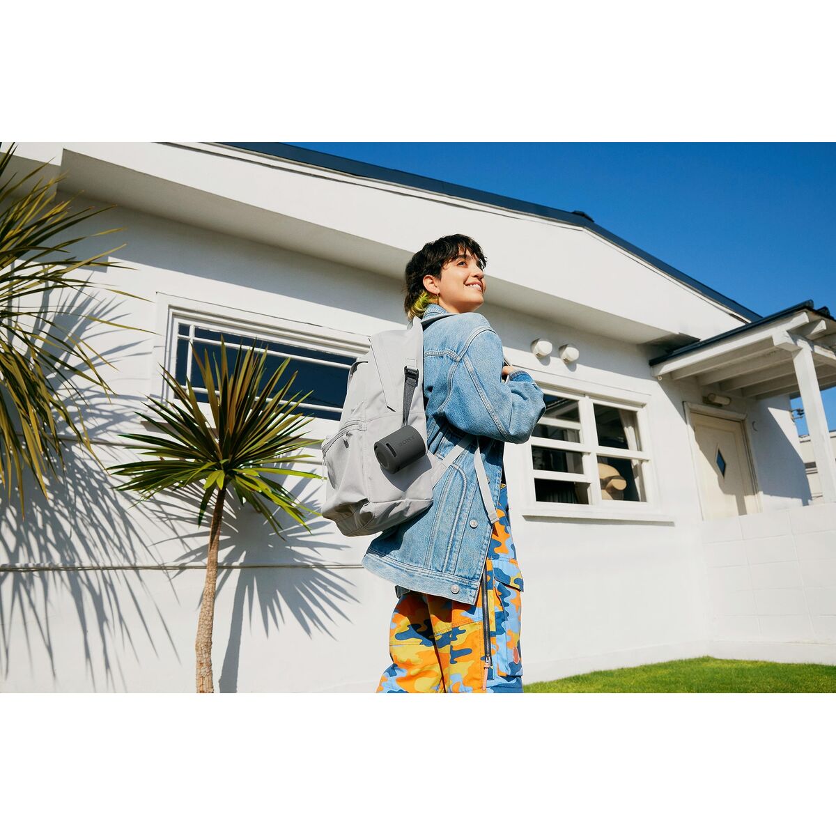 El exterior resistente y la correa hacen que este altavoz esté listo para casi todo. Cuélgatelo en la muñeca, en tu mochila e incluso de un árbol cuando estés tomando el sol, y el altavoz orientado hacia abajo proyectará el sonido hasta donde estés.