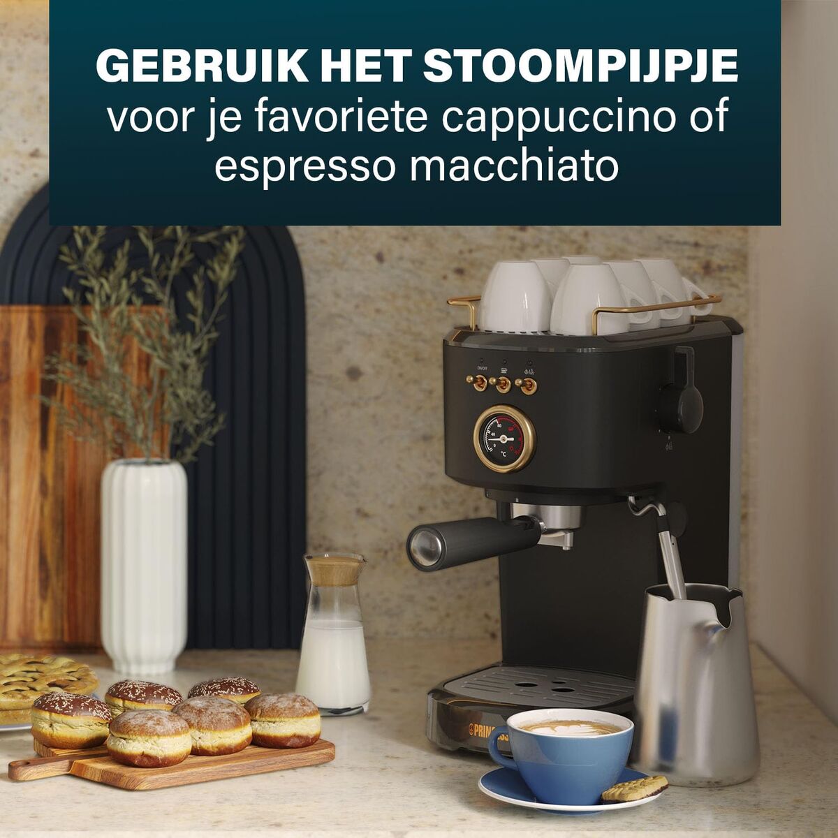 Con esta potente máquina de espresso, disfrutas a diario de un café con un sabor rico y completo. La máquina es apta para diferentes variedades de café, según tu preferencia. Gracias a la boquilla de vapor, puedes crear fácilmente una espuma de leche sedosa para deliciosos cappuccinos y espressos macchiatos. Prepara una o dos tazas a la vez y mantenlas a la temperatura perfecta con el calentador de tazas integrado. Fácil de usar y versátil, esta máquina de espresso es ideal para cualquier amante del café que busque calidad y comodidad.