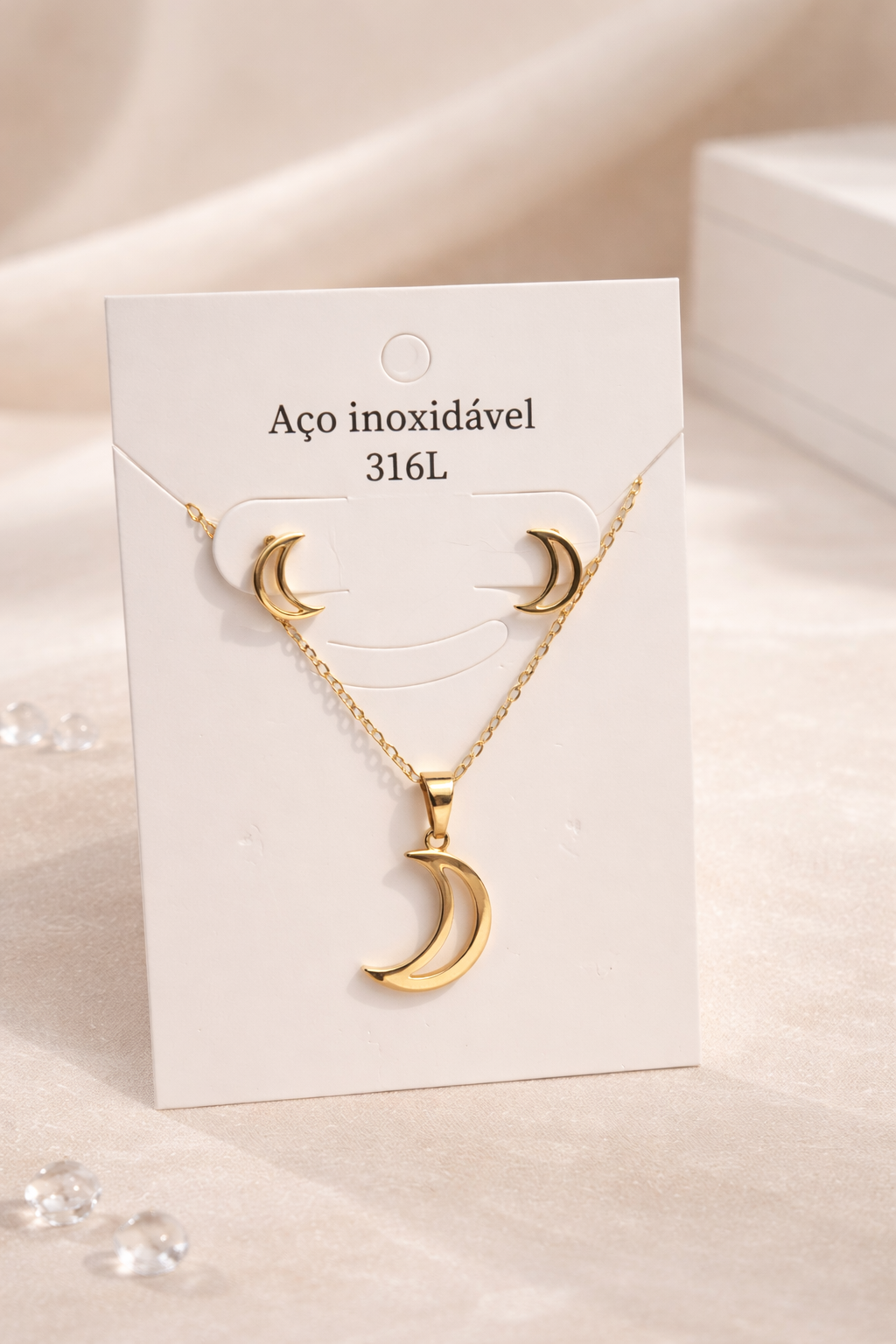Este elegante conjunto de joyas dorado con diseño de luna es el complemento perfecto para aportar un toque fino y moderno a cualquier look ✨