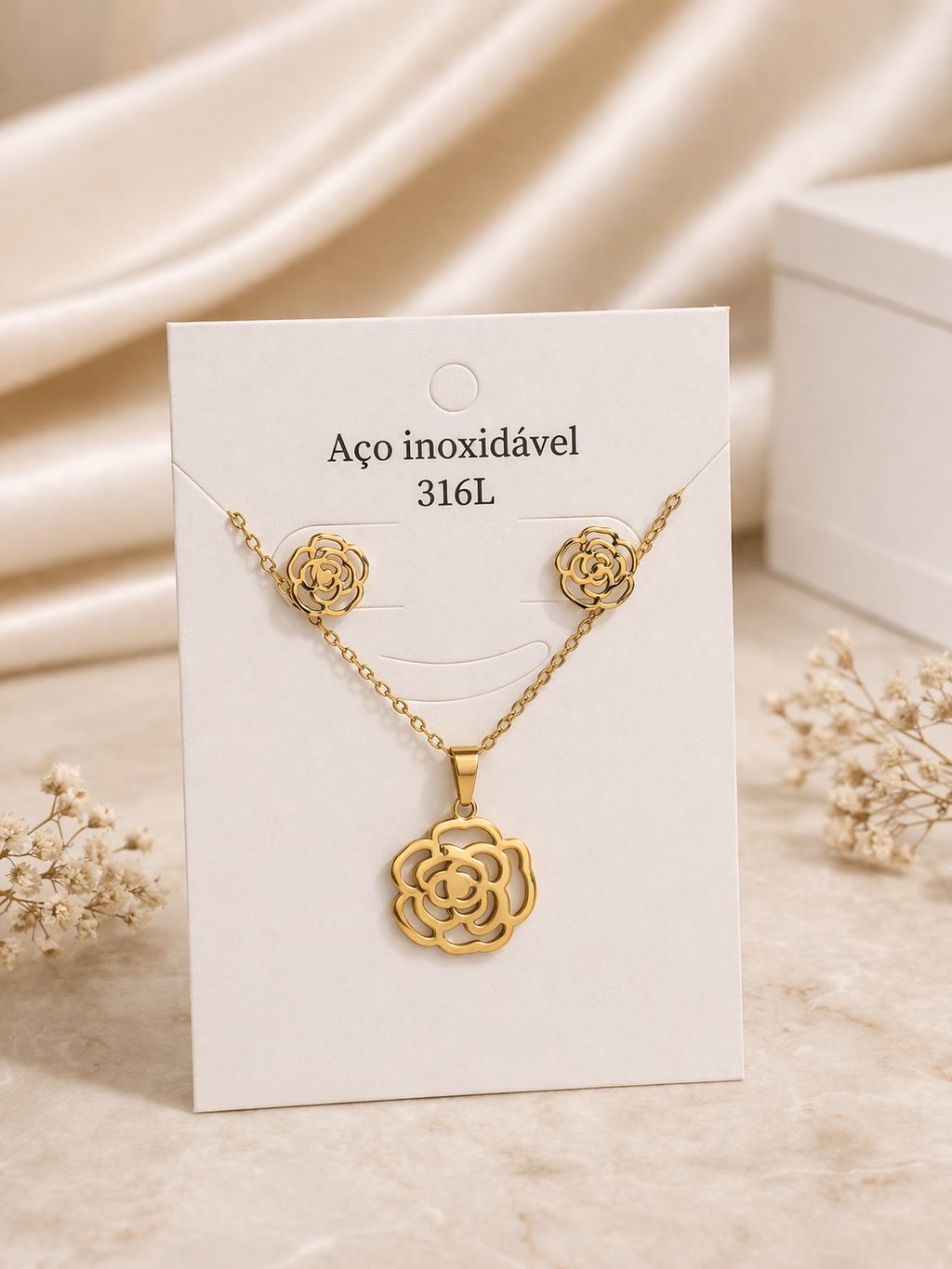 Sé el primero en valorar “Conjunto de Joyas Flor Dorada de Acero Inoxidable 316L”