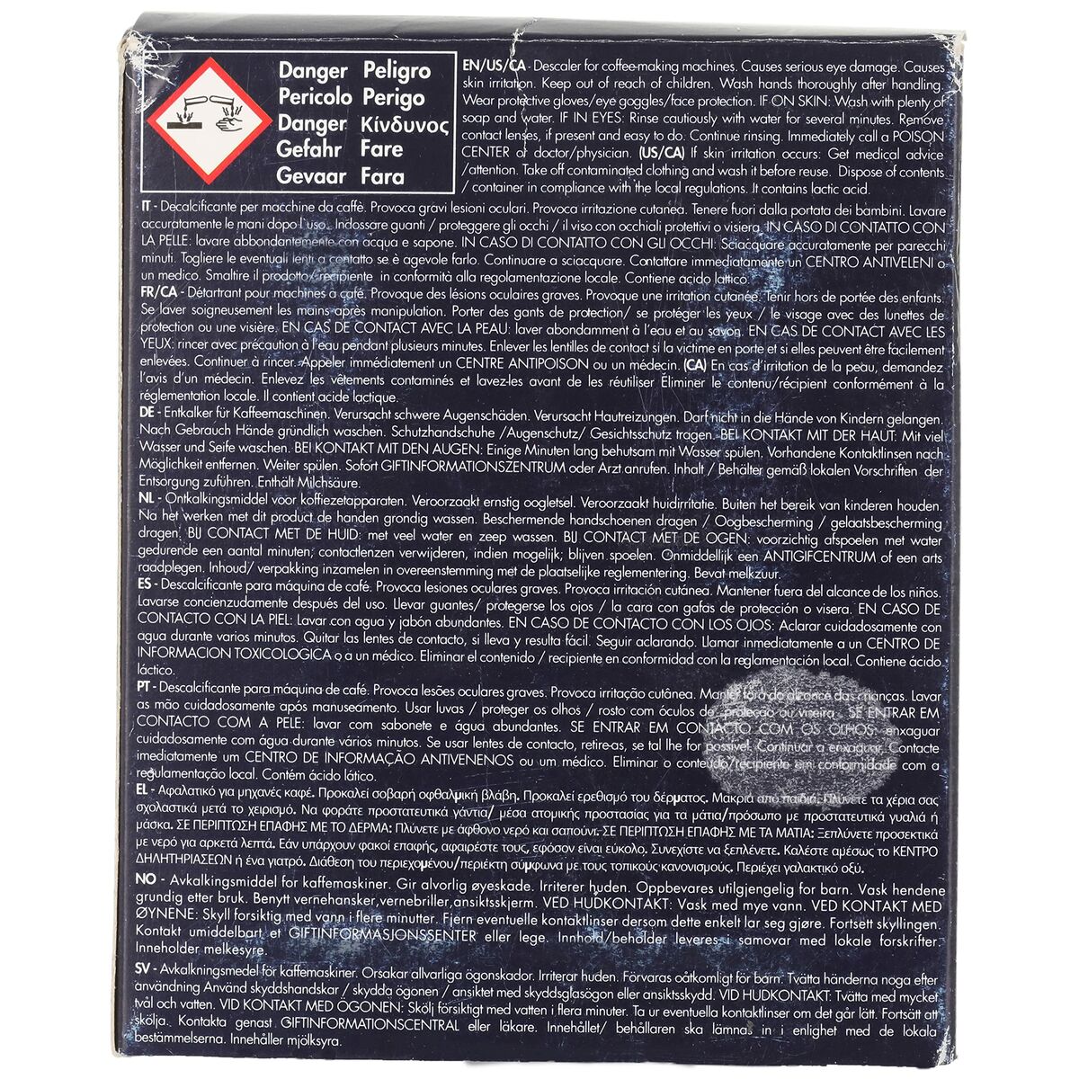 El descalcificador DeLonghi modelo 5513296011 es un producto diseñado específicamente para proteger y mantener en óptimas condiciones las cafeteras automáticas de la marca Delonghi, facilitando la eliminación eficaz de depósitos calcáreos que pueden afectar al rendimiento y la vida útil del equipo. Este descalcificador destaca por su formulación ecológica a base de ácido láctico totalmente natural, que no solo asegura una eliminación segura y eficiente del sarro, sino que también es respetuosa con el medio ambiente, minimizando el impacto contaminante habitual de otros productos químicos. El set incluye dos envases de 100 ml cada uno, con opciones para preparar soluciones para diferentes capacidades de tanque, desde 100 ml, 200 ml e incluso para cantidades de hasta 100 litros de agua tratada, lo que aporta versatilidad para distintas necesidades y modelos de cafeteras automáticas. Su presentación en formato líquido y envases de plástico blanco facilita su uso y almacenamiento, garantizando un manejo cómodo y seguro. La acción de este descalcificador permite mantener la calidad del café, conservando los aromas auténticos y evitando averías costosas causadas por la acumulación de cal en las conductos internos y componentes de las máquinas. Gracias a su compatibilidad excepcional con máquinas Delonghi y su composición natural, este producto se convierte en una opción práctica y sostenible para el mantenimiento regular, asegurando un funcionamiento óptimo y prolongando la vida útil de la cafetera. En definitiva, el descalcificador DeLonghi 5513296011 representa una solución confiable, eficaz y respetuosa con el medio ambiente para el cuidado y mantenimiento de sus cafeteras automáticas.
