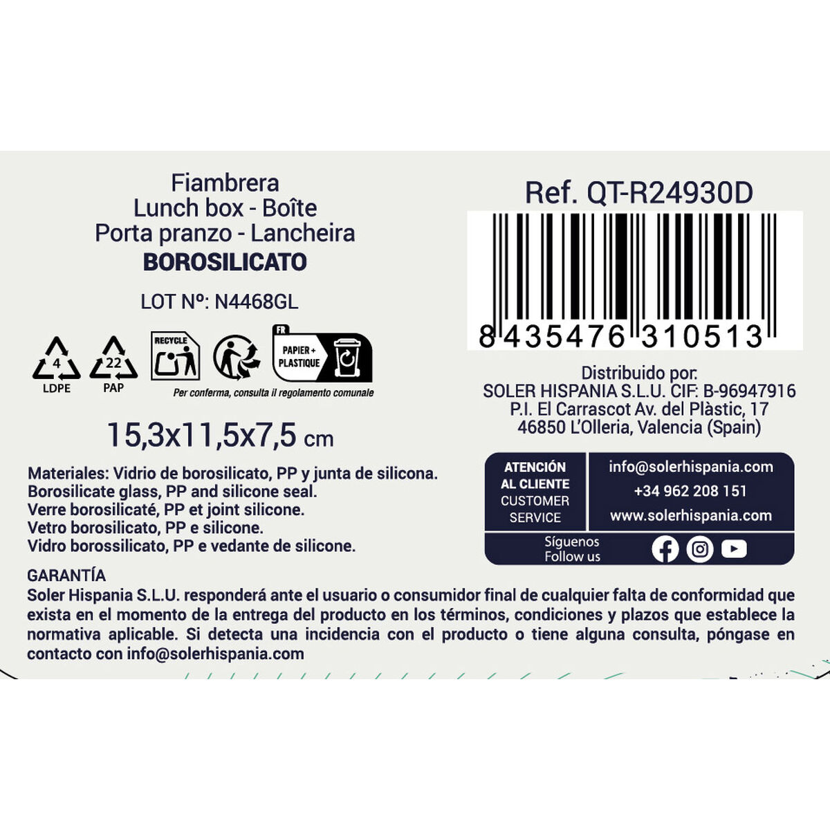 - Tipo: Fiambrera