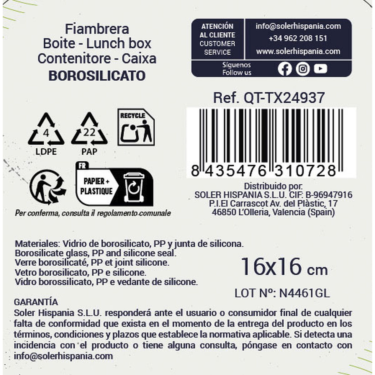 ¡Si buscas novedades de tendencia en el mercado, te presentamos Fiambrera Quttin Textury Transparente Vidrio de Borosilicato 750 ml (6 Unidades)!