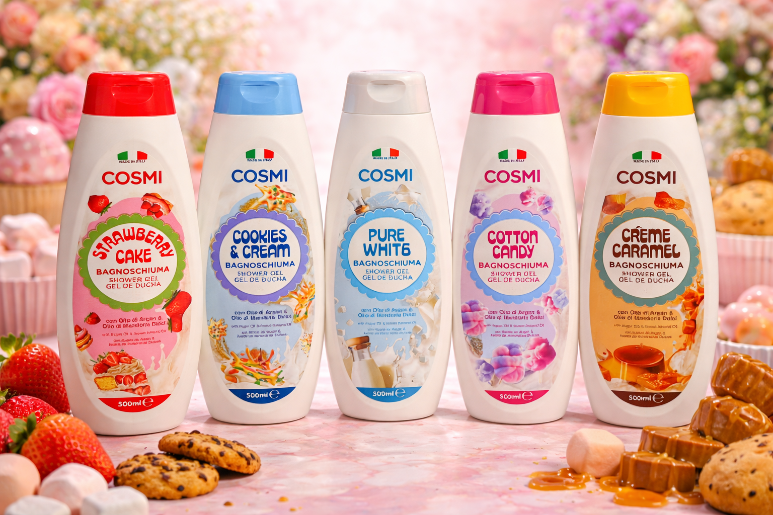 Convierte tu rutina diaria en un momento de placer con esta colección de geles de ducha gourmand de 500ml 🍓🍪🍬