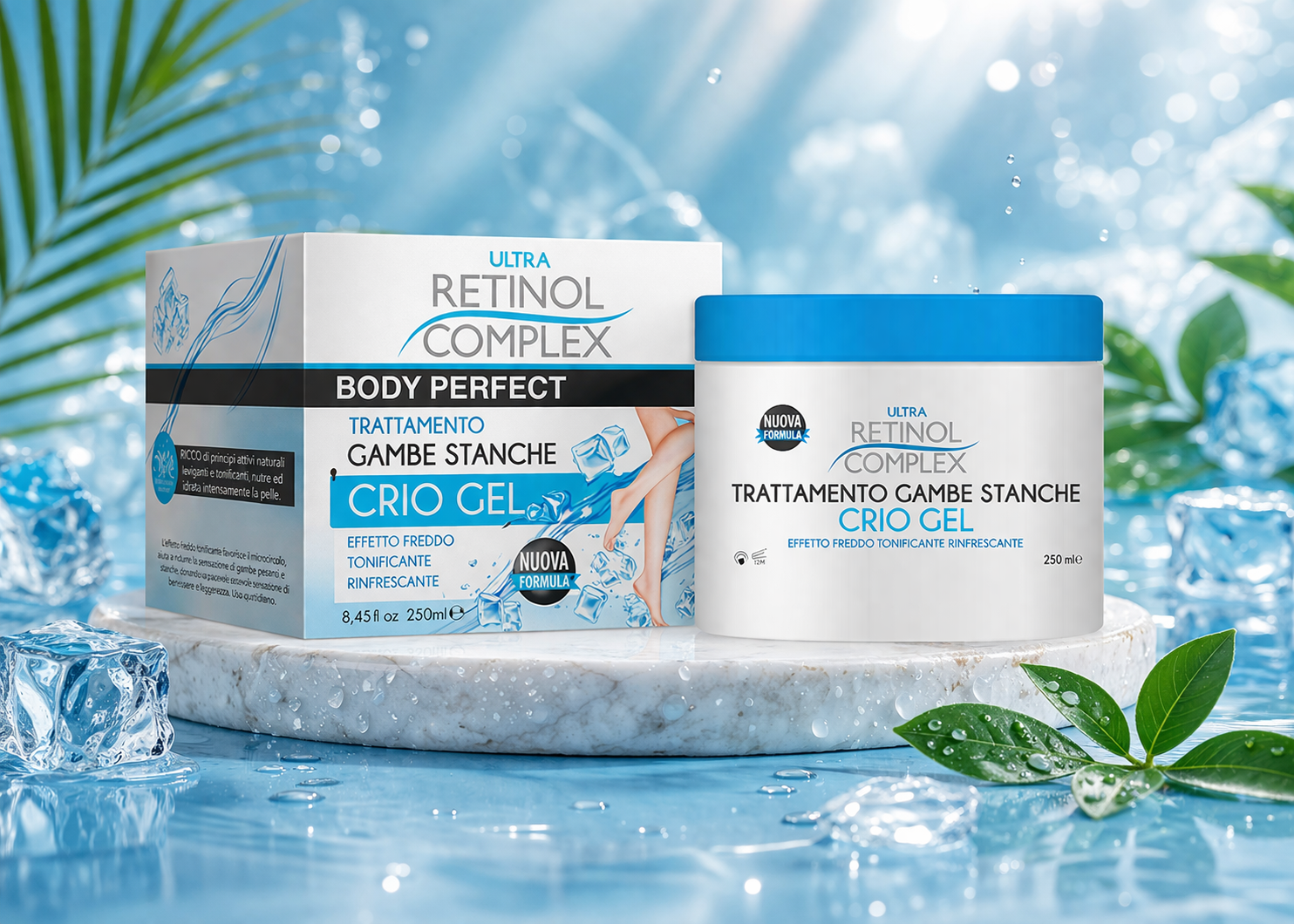 El Crio Gel Retinol Complex Body Perfect está diseñado para proporcionar una sensación intensa de frescor y confort en piernas fatigadas. Su fórmula con efecto frío ayuda a relajar, tonificar y refrescar la piel al instante.