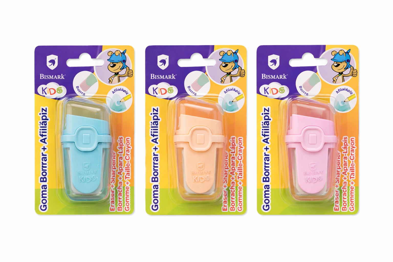 Práctico accesorio escolar 2 en 1 que combina goma de borrar y sacapuntas en un solo producto ✏️🧼