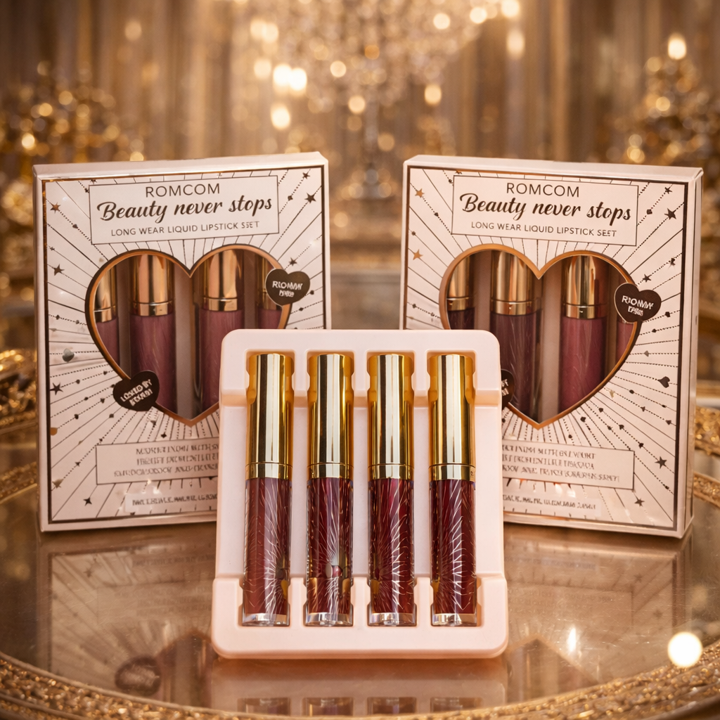 Descubre los set de labiales líquidos mate, una selección de tonos elegantes y versátiles perfectos para cualquier ocasión. Su fórmula de larga duración proporciona un acabado suave, uniforme y resistente, manteniendo tus labios hidratados y con un color intenso durante horas.