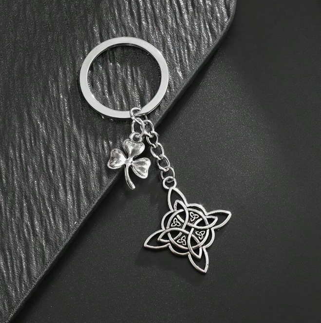 Este llavero combina dos símbolos llenos de significado: el trébol 🍀, asociado a la buena suerte, y el nudo celta ✨, que representa la protección, la conexión y la eternidad.