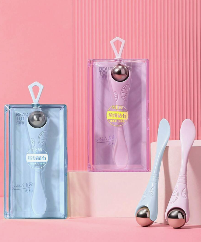 Este masajeador para el contorno de ojos combina una bola metálica efecto frío con una espátula aplicadora para mejorar tu rutina facial de forma práctica e higiénica.