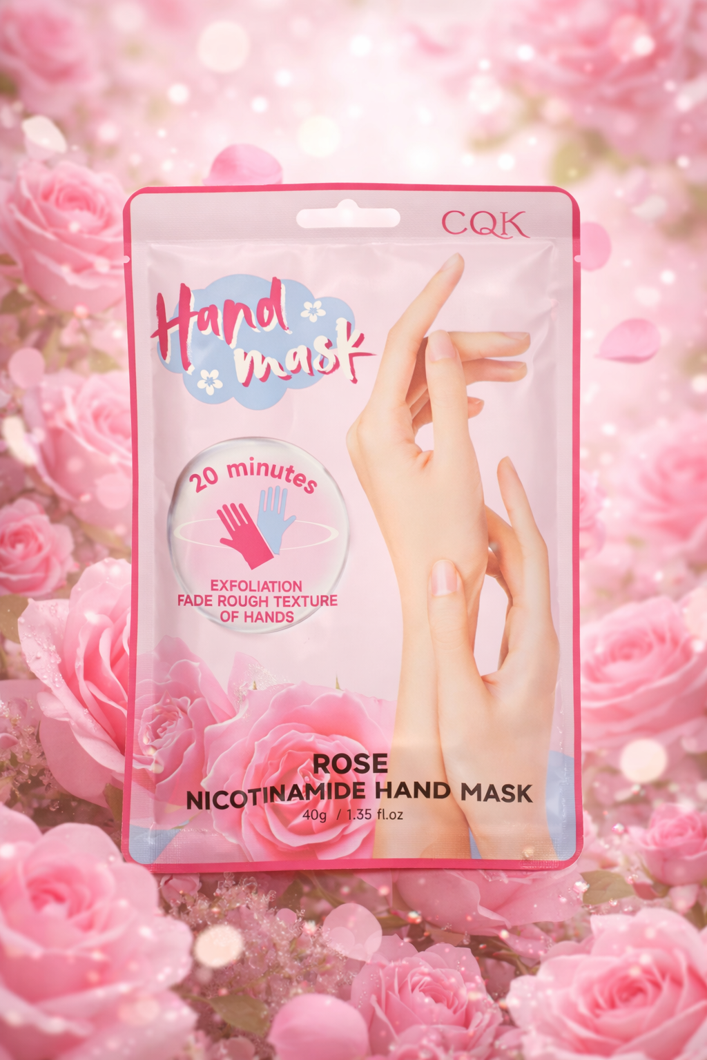 La mascarilla de manos con rosa y nicotinamida está diseñada para nutrir en profundidad, suavizar la piel y mejorar su textura desde la primera aplicación.