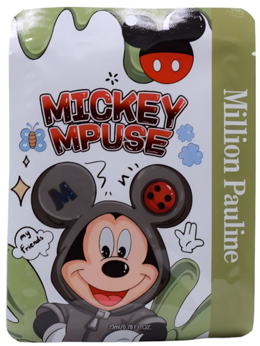 Mascarilla facial de uso único con diseño Mickey Mouse, ideal para hidratar y suavizar la piel mientras disfrutas de un momento de cuidado facial divertido y original.