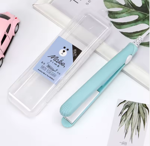 Dale un toque de estilo a tu rutina con esta mini plancha de pelo en color azul pastel 💙
