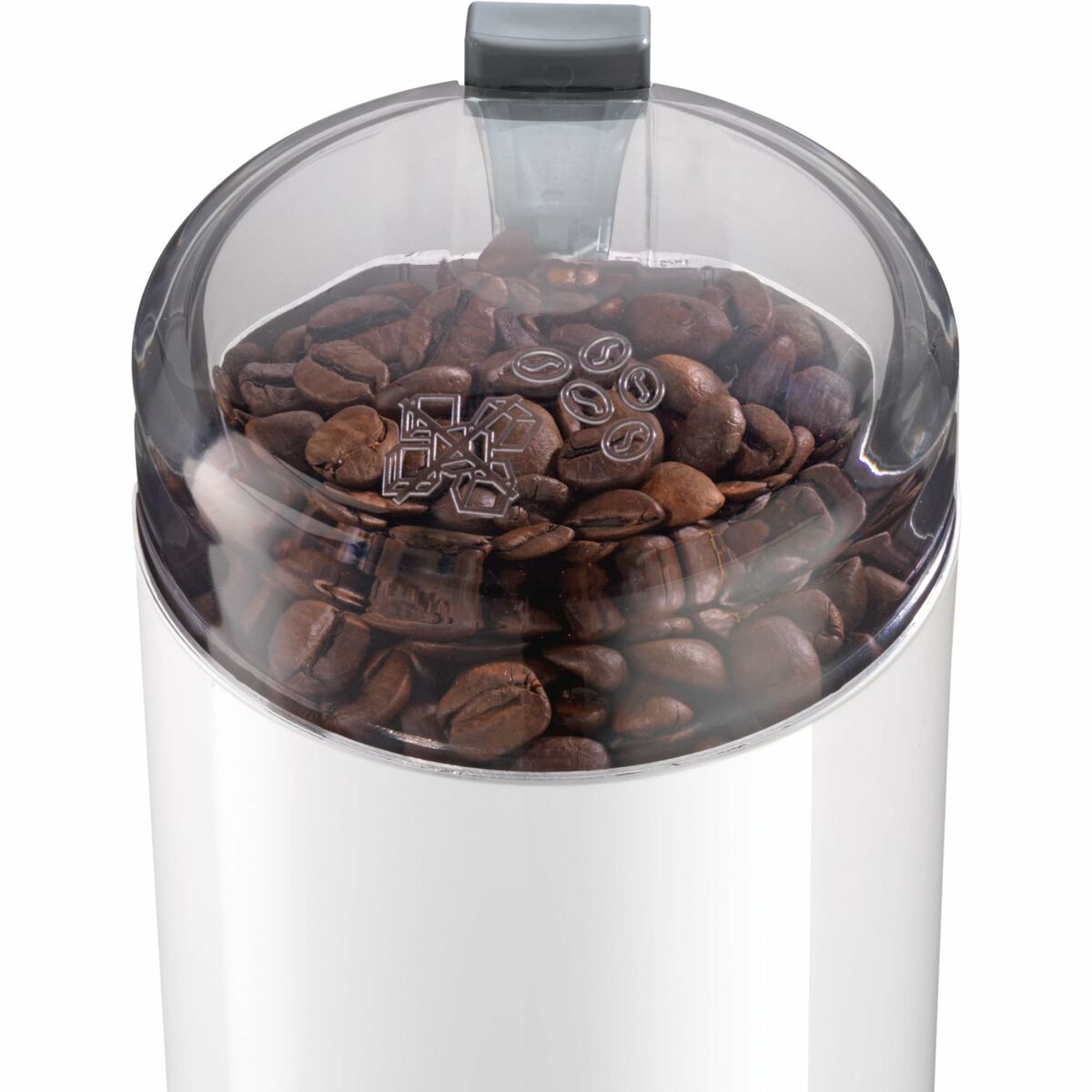 Bosch TSM6A011W. Tipo de producto: Triturador con cuchillas, Capacidad de granos de café: 75 g, Color del producto: Blanco. Potencia: 180 W. Peso: 618 g
