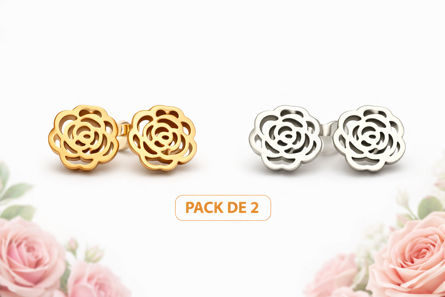 Descubre estos pendientes en forma de rosa fabricados en acero inoxidable 316L, diseñados para aportar un toque femenino, delicado y sofisticado a cualquier look.