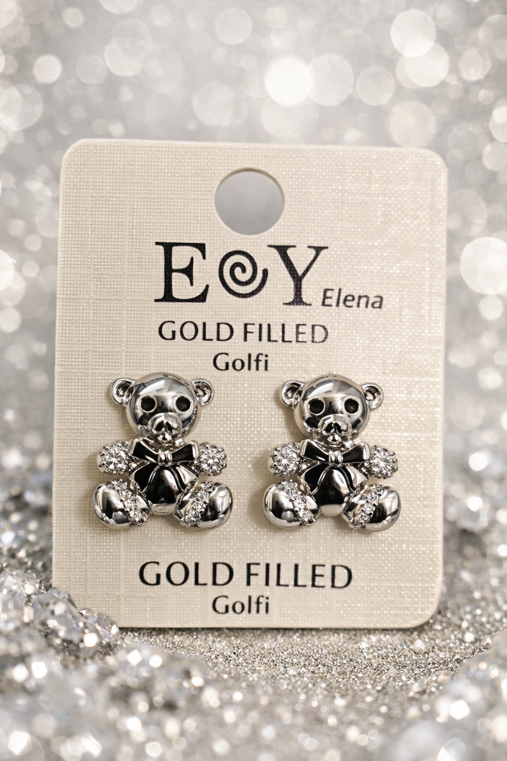 Estos adorables pendientes con forma de osito destacan por su diseño delicado y brillante. El pequeño lazo en el pecho aporta un toque elegante y femenino que los convierte en un accesorio perfecto para cualquier ocasión.