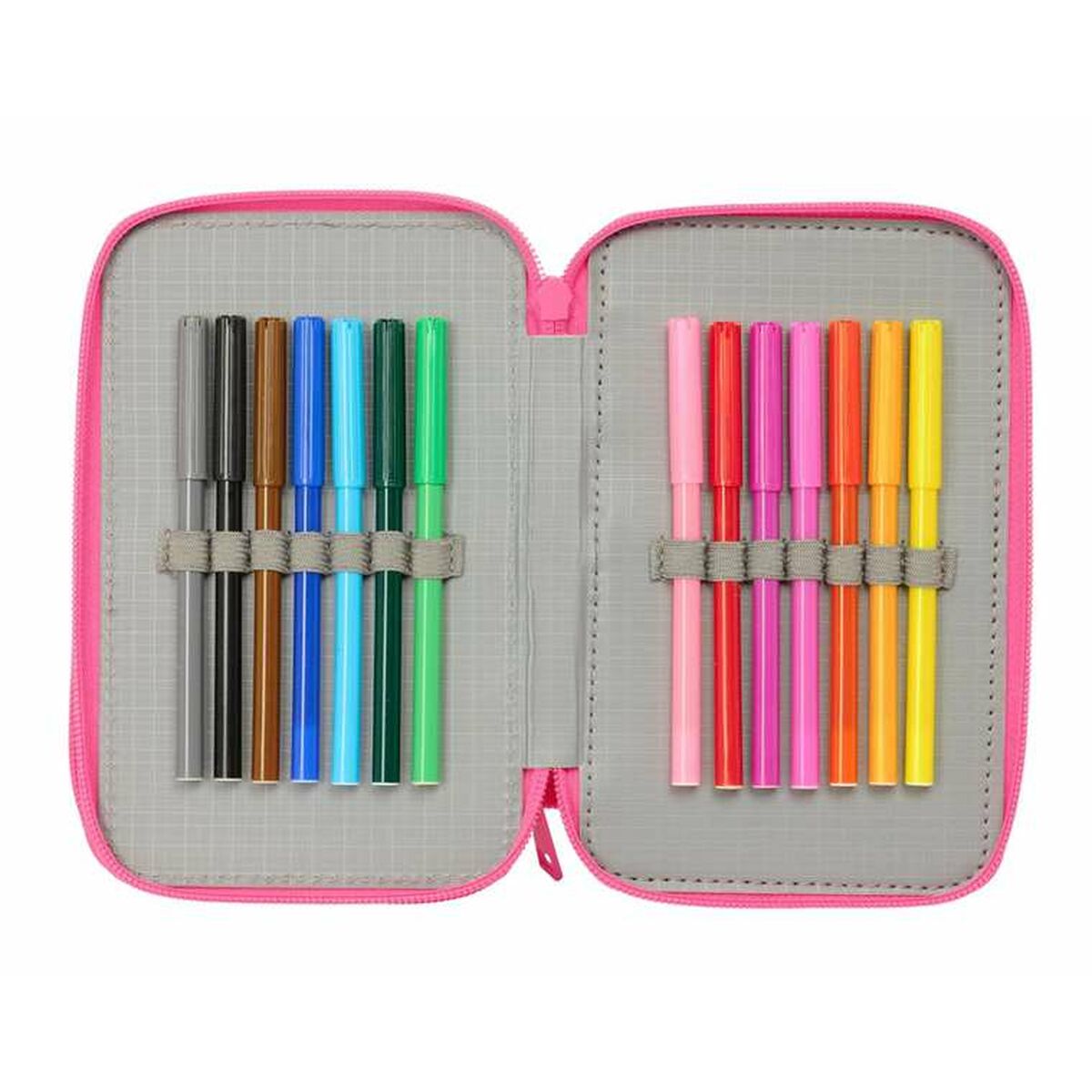 El Plumier Triple de la marca Disney Princess es un estuche compacto y funcional diseñado especialmente para niñas a partir de 3 años, que integra de manera organizada hasta 37 piezas de material escolar. Con unas medidas aproximadas de 12,5 x 19,5 x 5,5 cm, este plumier ofrece un tamaño ideal para el transporte en mochilas escolares sin resultar voluminoso. Su elegante diseño en color rosa, acompañado de detalles característicos de las princesas Disney, contribuye a hacerlo visualmente atractivo para su público infantil. Fabricado en China, cuenta con una estructura resistente y cierre de cremallera que asegura la protección y fácil acceso a todos los elementos incluidos, que suelen comprender lápices, bolígrafos, gomas y otros útiles básicos para escribir y dibujar. La triple compartimentación facilita la separación y organización de los utensilios, evitando que se mezclen y simplificando la búsqueda rápida durante el uso. Este conjunto es práctico para el día a día escolar, promoviendo el orden y la disponibilidad inmediata de materiales esenciales. En definitiva, el Plumier Triple Disney Princess representa una solución versátil y atractiva que combina funcionalidad y diseño pensando en las necesidades de los estudiantes más jóvenes.