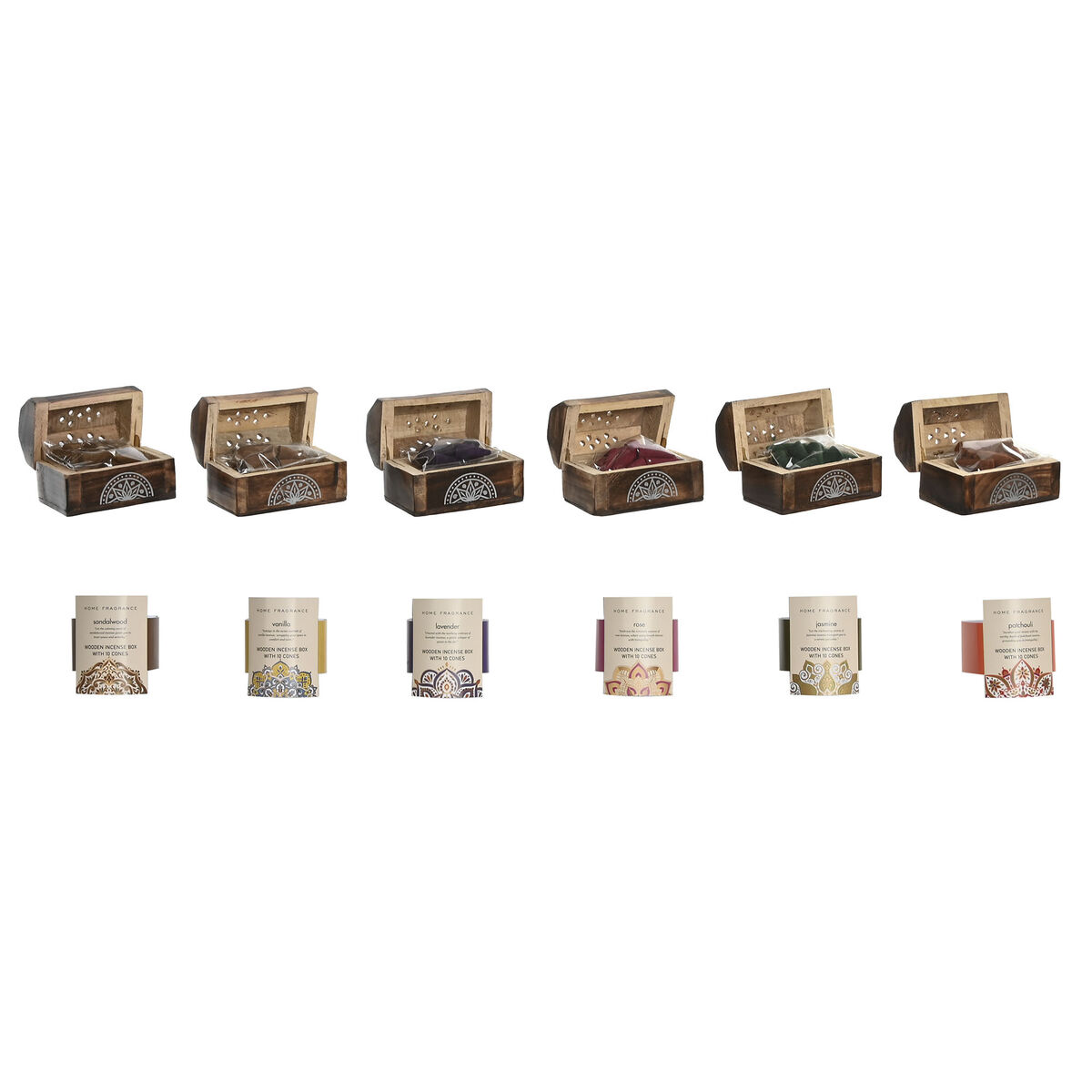 Quemador de esencias Home ESPRIT Madera de mango Mandala Indio 9,5 x 5,5 x 6 cm Incienso (6 Unidades) (10 Unidades)