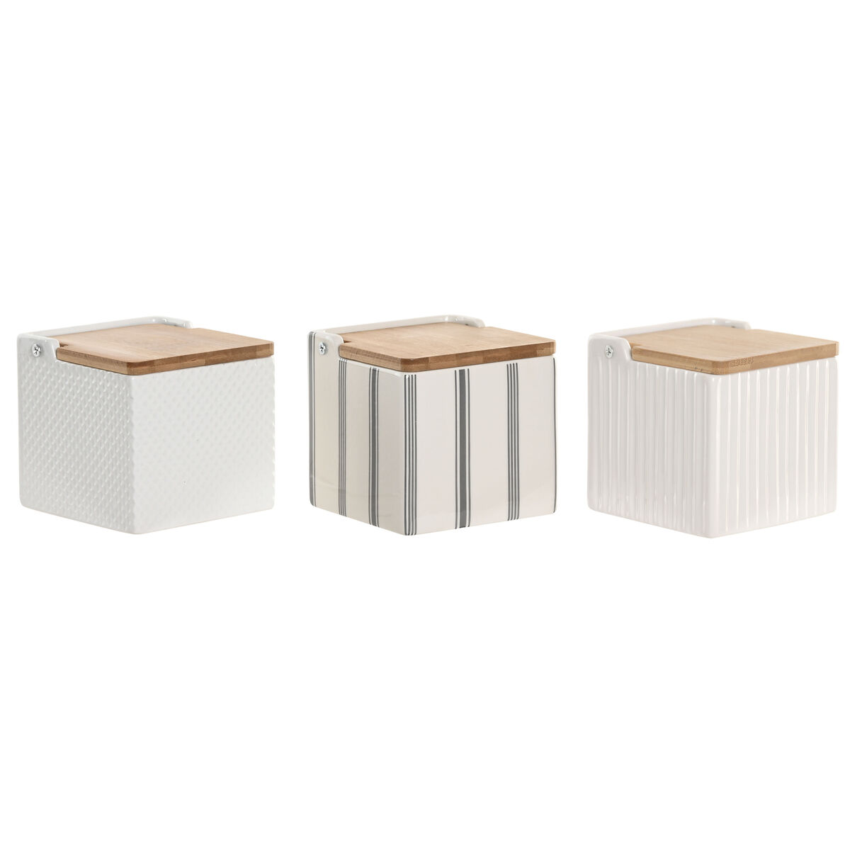 ¡Si buscas novedades de tendencia en el mercado, te presentamos Salero con Tapa Home ESPRIT Blanco Bambú Gres 11 x 11 x 11 cm (3 Unidades)!