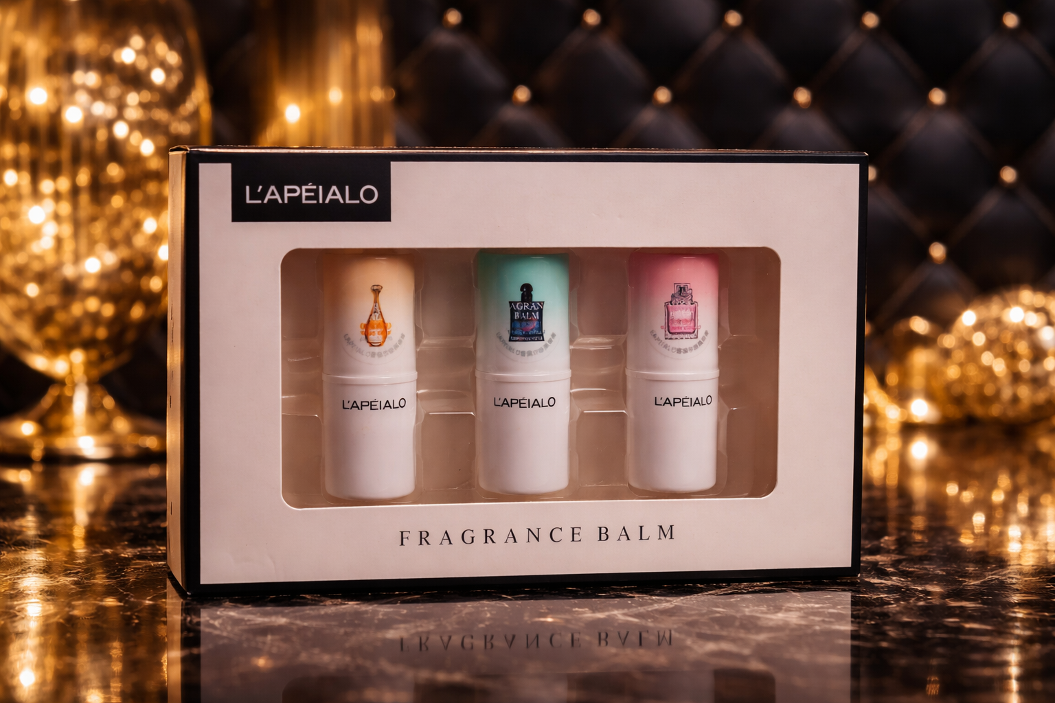 Descubre este elegante set de bálsamos perfumados, perfecto para llevar siempre contigo y disfrutar de tus fragancias favoritas en cualquier momento del día.