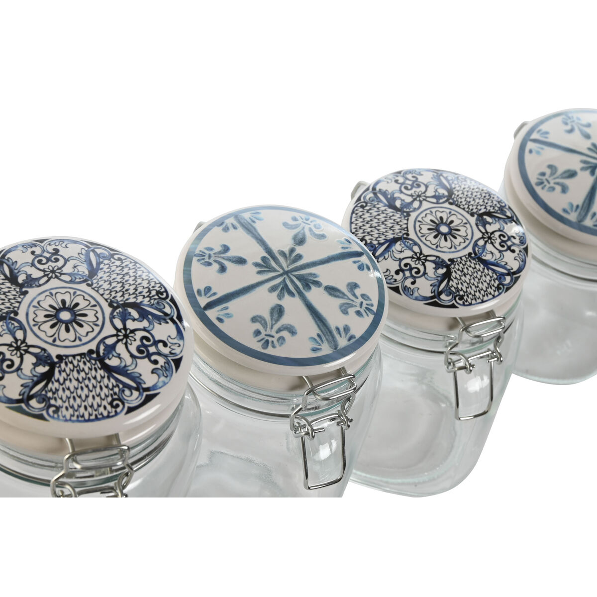Si te gusta cuidar cada detalle de tu hogar y estar a la última en productos que te harán la vida más facil, compra Set de 4 Botes Home ESPRIT Azul Blanco Metal Silicona Cristal Gres 800 ml 1 L 1,5 L 2,2 L 4 Piezas al mejor precio.
