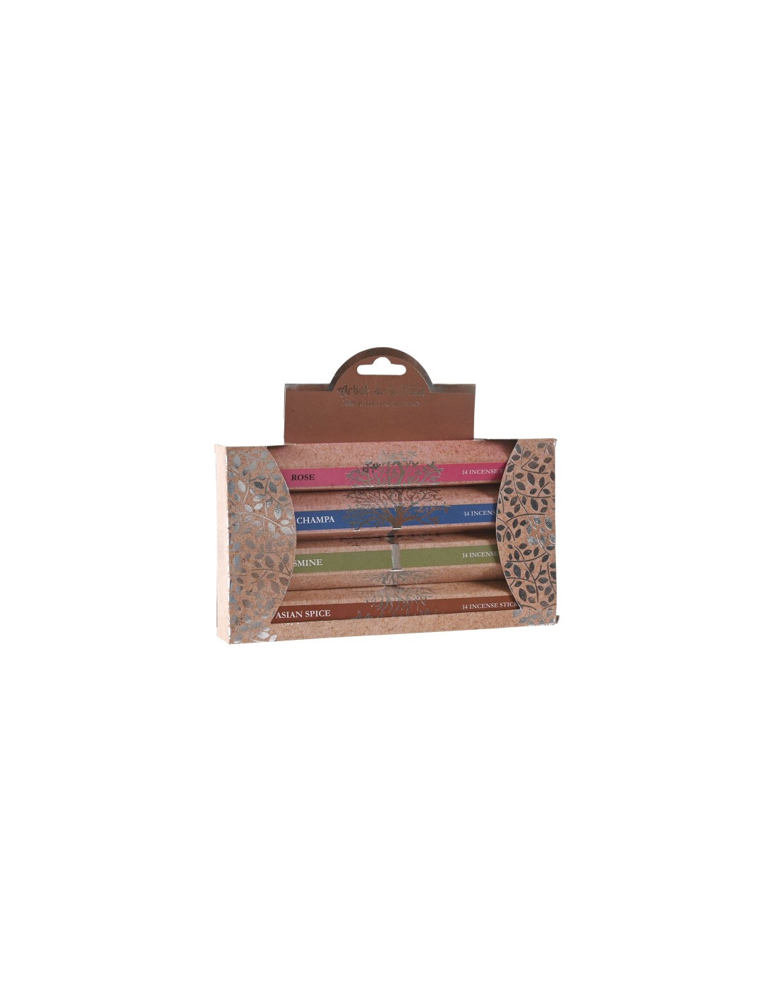 Cada pack incluye 56 varillas de incienso, repartidas en diferentes fragancias, ideales para acompañar momentos de relajación, meditación, yoga o simplemente para perfumar el hogar con armonía.
